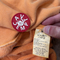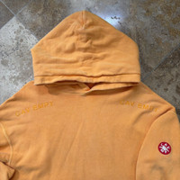 Cav Empt AW19 Overdye Wire Mesh Hoodie in Orange, men’s size M. Originally $245. Heavyweight 100% cotton hoodie featuring large back print and front dual shoulder brand embroidery. In excellent preowned condition; general wear and some blue dye bleed in a few areas. Width 61cm Shoulder width 61cm Sleeve length 60cm Length 60cm