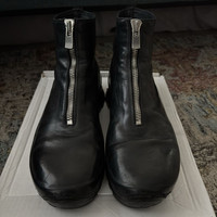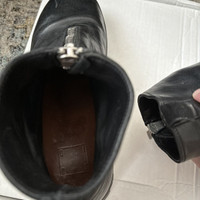 Guidi VS01 front zip boot in black horse leather, men’s size 42 (fits men’s US size 8.5-9). Originally $1487. Full grain horse leather upper and sole wrap. Rounded toe. Made in Italy. Front zip closure. Vibram rubber sole. Pull tab at heel. Approx 32mm/ 1.25 inch heel. Approx 140mm/ 5.5 inch shaft. In excellent preowned condition; general wear. Does not come with original box.