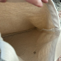 Hender Scheme Circulation cotton canvas record tote bag in natural ecru / black. Hender Scheme canvas tote bags retail for ~350-500. Circulation store signature print on front. Undyed cotton canvas fabric. Record bag silhouette. Bias taped inner seams for added durability. Designed in a rectangular shape, it's sized to fit the daily essentials, plus a tablet or notebook. Launched in 2023 as an online platform, Circulation is an effort from Hender Scheme to encourage circularity amongst its customers and allow them to have their products repaired, extending their lifetime. The Circulation initiative was launched with the goal of “repairing and cherishing something for a long time”; ‘something’ referring to Hender Scheme’s expertly crafted products. The new space isn’t confined to just repairing Hender Scheme shoes, they welcome footwear, accessories and bags from other brands, too. In addition, they have plans to sell resoled shoes further down the line. In pristine preowned condition; used a few times. General wear. Does not come with pins. Strap drop 20cm Bottom width 32cm Bag height 36.5cm