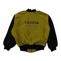Vintage Toyota Racing Bomber Size Large On Tag Chest (armpit to armpit) : 24 inch Length (neck to bottom hem) : 27 Inch Sleeve (from neck to cuff) : 30 Inch "There is a small tear on the inside but it's still fine". •Please let me now if you have any questions •Please check actual size carefully, no returns or complain for wrong size actual Ship Use EMS ( Exspress Mail Service with Tracking Number ) Item will be delivery within 2-3 working days after purchase and will be arrived 4-9 bussines days.. Thank you