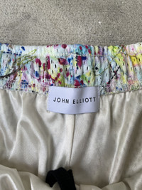 Up for bid is a pair of John Elliott Practice Shorts Paint Splatter Size XL Gently worn twice. No stains, rips, or holes. Measurements (inches): Waist: 34 Rise: 11 Inseam: 7 Leg Opening: 14