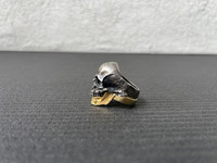13 Lucky Monkey Split Skull Silver Double Ring Size 7