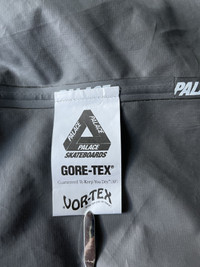 Palace Gore-Tex Vortex PacLite Jacket Black FW18 Gently worn three times. Very, very small peel on bottom left corner of Tri-Ferg logo (pictured). Measurements (inches): Chest - 26 Length - 31.5 Sleeves - 37.5