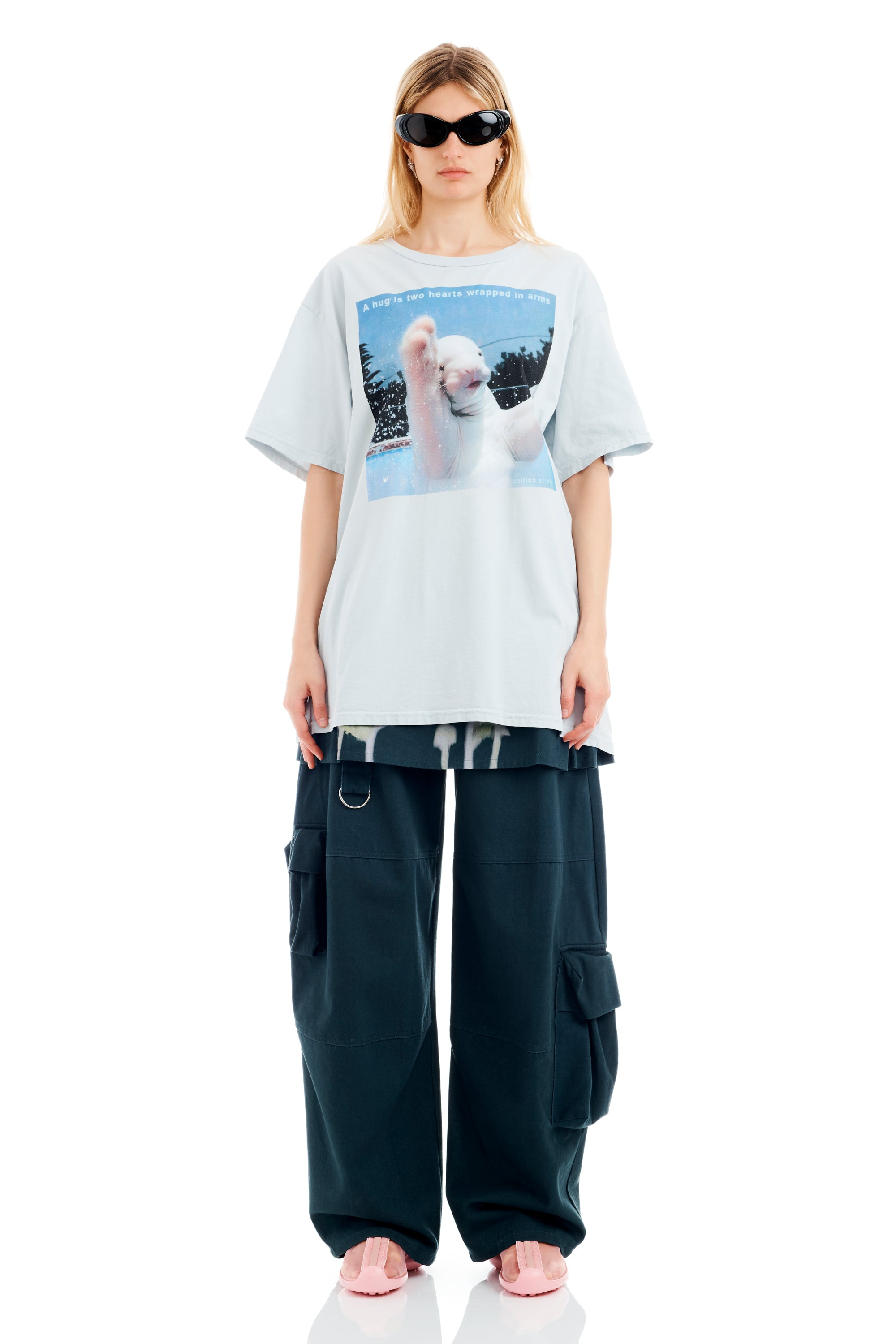 Short sleeve tee with custom Collina Strada A Hug graphic. Oversized fit. Model wears size X-Large and is 5'9'' - Crewneck - Short sleeves - 100% organic cotton - Machine wash, tumble dry - Made in the USA - XS=0-2, S=2-4, M=4-6, L=6-8, XL=10-12.