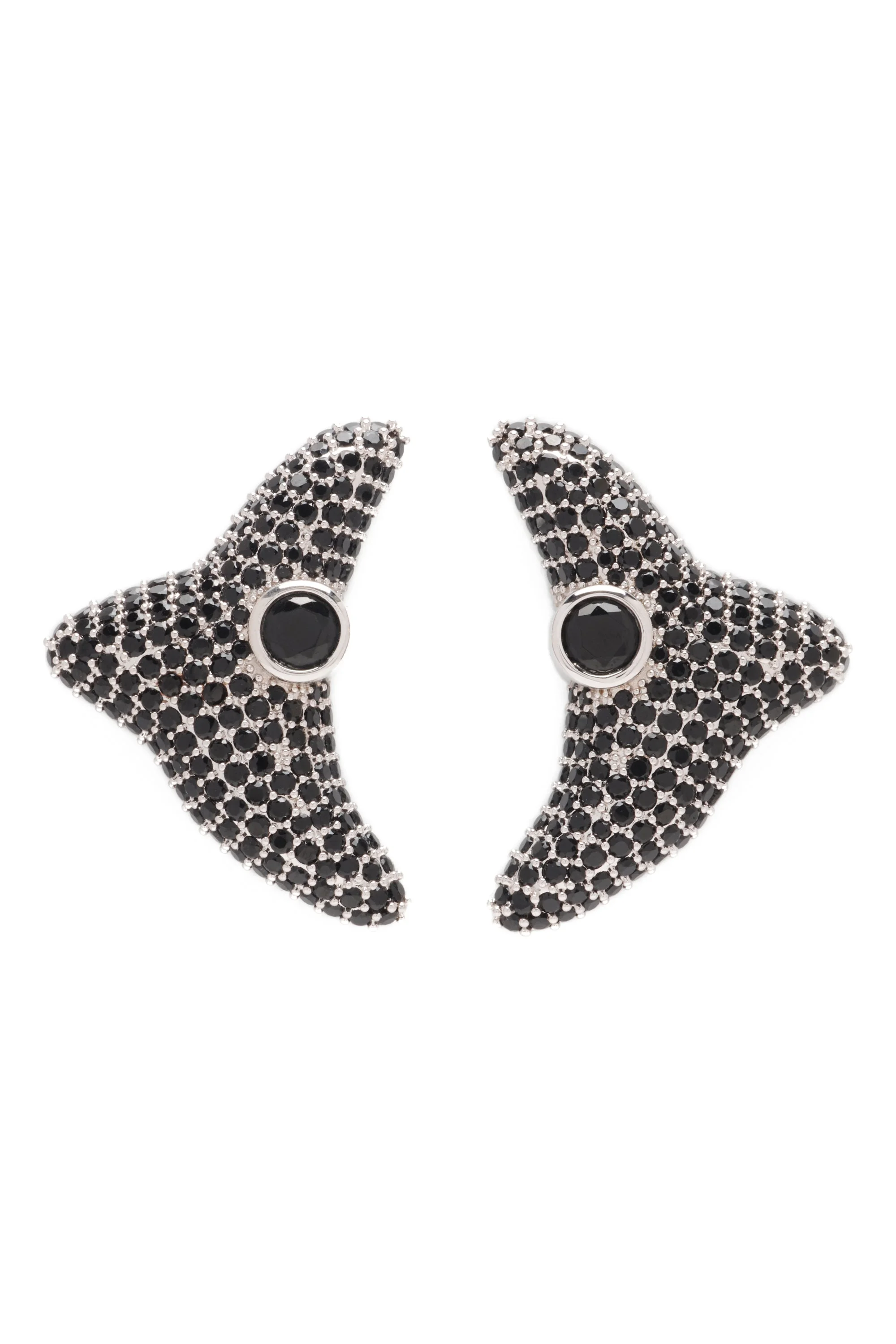 Oversized studs encrusted in rhinestones. 100% Sterling Silver and Cubic Zirconia 45 x 50 mm This is a costume jewelry piece. Please use care with this item and do not wear while bathing or swimming. Excessive wear may cause the finish to deteriorate. Jewelry bag handmade with fabric scraps from our NY studio. Each jewelry bag is one of a kind.