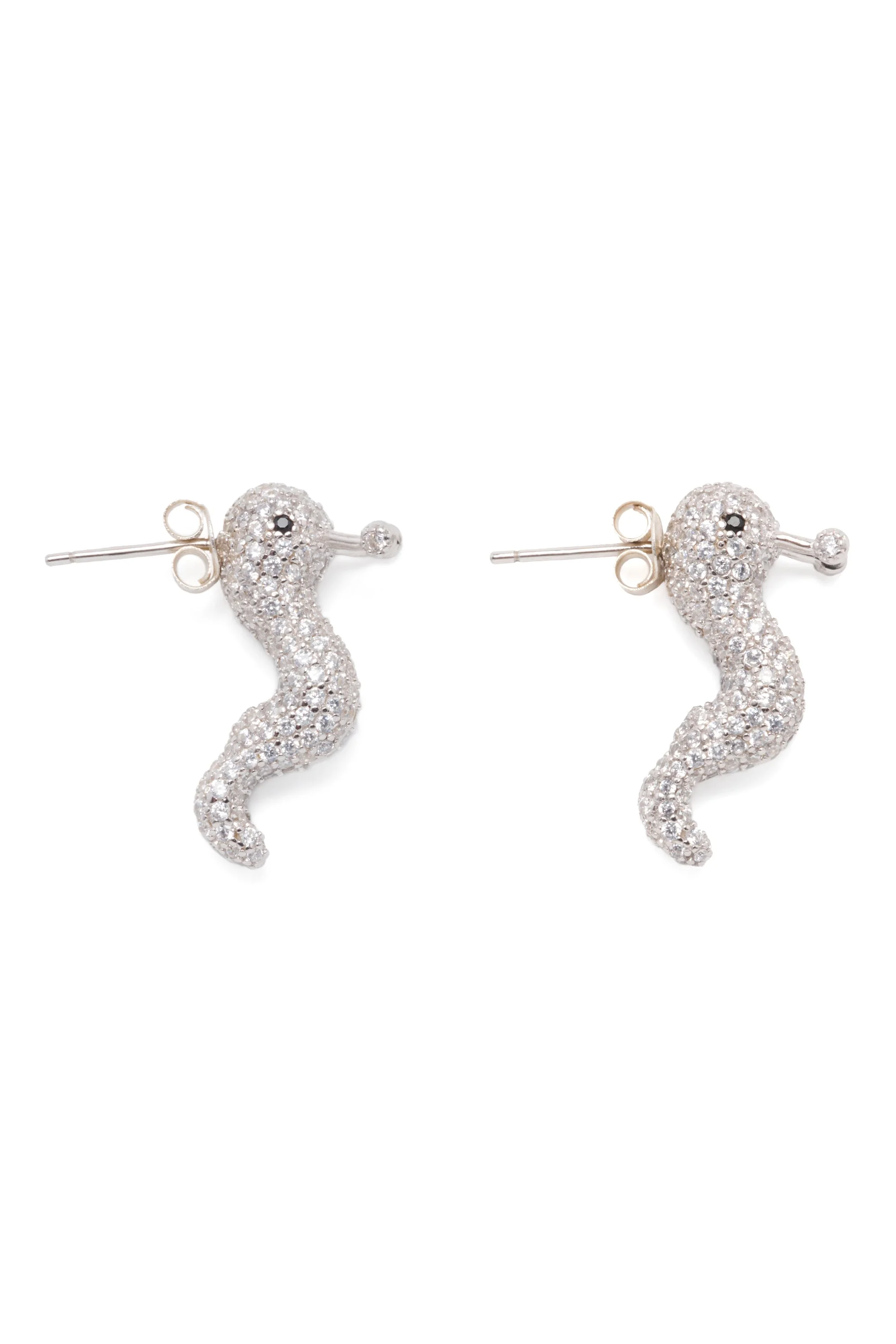 Slug studs encrusted in rhinestones. 100% Sterling Silver and Cubic Zirconia 12 x 25 mm This is a costume jewelry piece. Please use care with this item and do not wear while bathing or swimming. Excessive wear may cause the finish to deteriorate. Jewelry bag handmade with fabric scraps from our NY studio. Each jewelry bag is one of a kind.