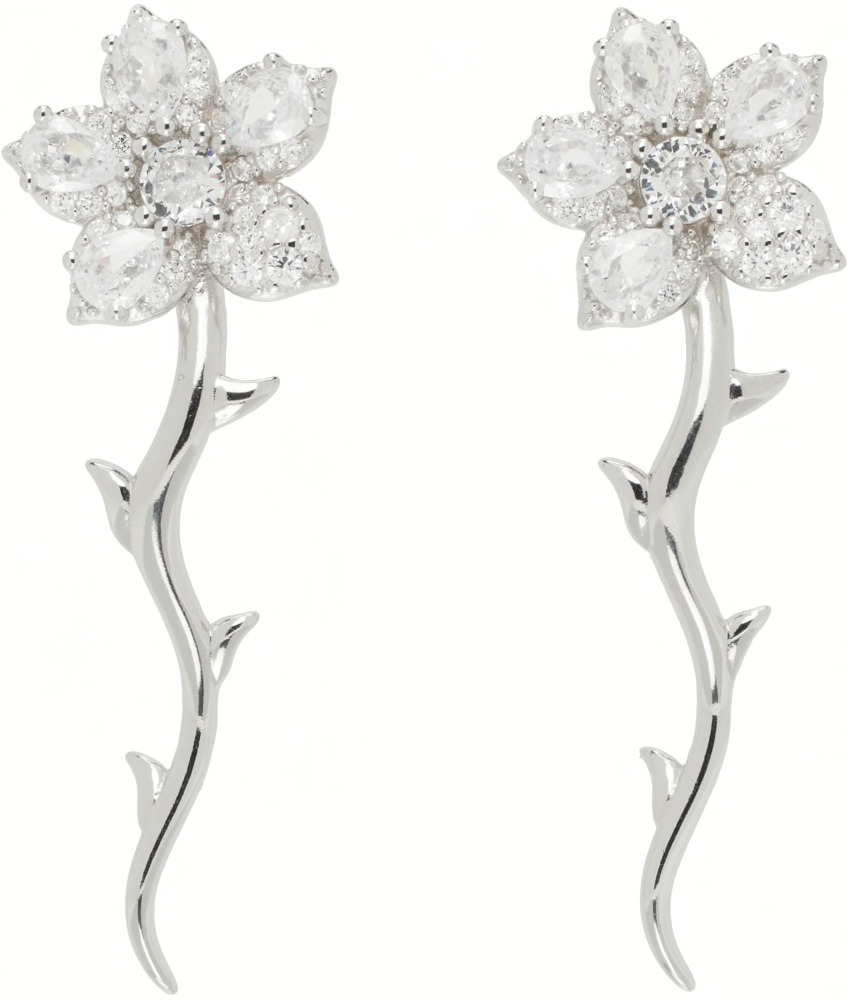 Sterling silver vine and flower earrings with crystal clear gemstones. Stud back. 4 x 1.5 cm 100% sterling silver This is a costume jewelry piece. Please use care with this item and do not wear while bathing or swimming. Excessive wear may cause the finish to deteriorate. Jewelry bag handmade with fabric scraps from our NY studio. Each jewelry bag is one of a kind.