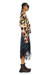 Drippy Leopard puffed long sleeves with gathered detailing at the shoulders and cuffs. The front has a cinched waist with tie detail. Keyhole at the back. Model wears size Small and is 5'9''. 100% Crinkle Cotton Made in USA - True to size. - XS=0-2, S=2-4, M=4-6, L=6-8, XL=10-12.