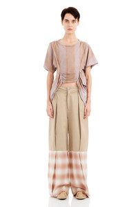 Hand painted short sleeve t-shirt with paneled effect at the waist and dramatic cutout on the back. Model wears a size medium for oversize fit and is 5'9''. 100% Organic Cotton This is a hand dyed garment, there may be slight variations. Made in USA - True to size. - XS=0-2, S=2-4, M=4-6, L=6-8, XL=10-12.