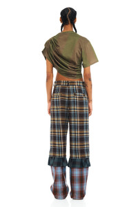 Relaxed fit, mid rise trouser in a mix of plaids. Ruffle at the knee. Made in New York - Runs large - XS=0-2, S=2-4, M=4-6, L=6-8, XL=10-12.
