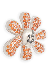 Crystal pave flower earrings with happy faces :) Stud back. 22 x 18 mm Sterling silver and Rhinestone crystals Made in China Jewelry bag handmade with fabric scraps from our NY studio. Each jewelry bag is one of a kind.This is a costume jewelry piece. Please use care with this item and do not wear while bathing or swimming. Excessive wear may cause the finish to deteriorate.