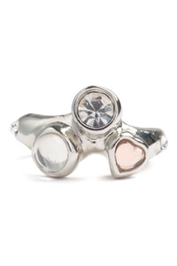 Dainty, organic ring with dead stock rhinestones and cabochons.Hand enameled. Rhodium plated, recycled pewter base with Swarovski crystals and cabochons Made in USA This is a costume jewelry piece. Please use care with this item and do not wear while bathing or swimming. Excessive wear may cause the interior finish to deteriorate. Jewelry bag handmade with fabric scraps from our NY studio. Each jewelry bag is one of a kind.