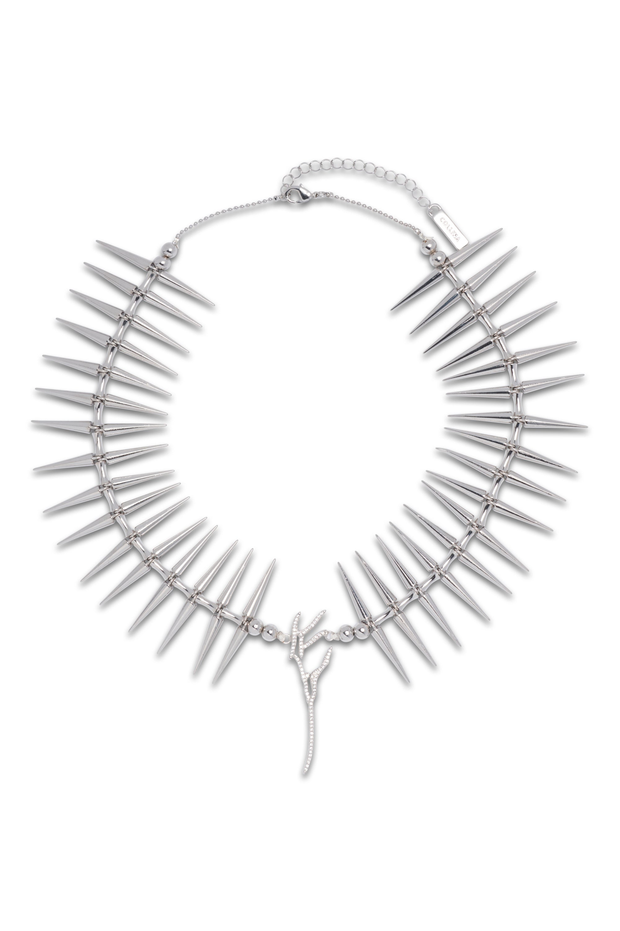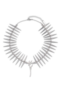 Spiky necklace with crystal pave wing at center. Swarovski crystals and plated brass. 43.5-50 cm This is a costume jewelry piece. Please use care with this item and do not wear while bathing or swimming. Excessive wear may cause the finish to deteriorate. Jewelry bag handmade with fabric scraps from our NY studio. Each jewelry bag is one of a kind.