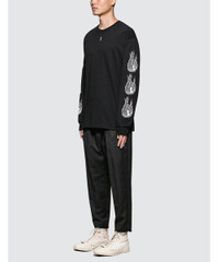 Sasquatchfabrix, Kung Fu Pants Black textured, Size L NWOT, never worn Features: - Tapered fit - Mid-rise - Zip-fly - Shoelace-style self-tie belt at waistband - Pleats at front - Piping at outseams - 70% Wool | 28% Polyester | 2% Polyurethane - Made in Japan Measurements: Waist: 16.5" laid flat Front Rise: 13.5" Inseam: 24" Length: 37.5"