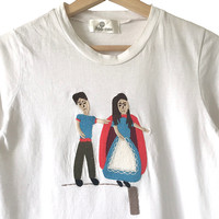Authentic Ne-Net IS Latin Native Embroidery Art Tee. Tag Ne-Net, made in Japan. Size : Fits S Measurement : Width (Armpit-armpit) : 17.5 Inch Length (Shoulder to bottom) : 23.5 Inch Material : Cotton Condition : A A+ = Perfect! (Almost new/new/deadstock) A = Great (All in good shapes. No fade spot/fades). B+ = Vintage looks (minor fade spot/fades). B = Vintage looks with minor defect (stain/rip or hole/minor damage). Please read our shop policies before buying. Please also check the details and measurement. If you need further details, do contact us. Thank you for viewing!