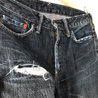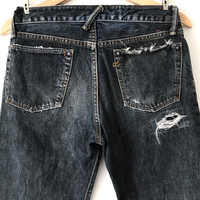 Authentic 45rpm Japan Deep Indigo Original Distressed Jeans. Tag 45rpm, made in Japan. Size : W28 Measurement : Waist : 28/29 Inch Outseam : 39 Inch Inseam : 30 Inch Leg Opening : 15 Inch Material : Cotton Condition : A (No flaws) A+ = Perfect! (Almost new/new/deadstock) A = Great (All in good shapes. No fade spot/fades). B+ = Vintage looks (minor fade spot/fades). B = Vintage looks with minor defect (stain/rip or hole/minor damage). Please read our shop policies before buying. Please also check the details and measurement. If you need further details, do contact us. Thank you for viewing! *** Please expect delays on some shipment due to the Covid-19 global pandemic. Will do the best to keep purchases safely delivered in good condition. Stay safe & let’s hope for a better future! Thank You!
