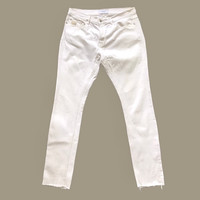 April77 Joey Cold Ecru White Denim. Tag April77, made in Morocco. Size : W33 L33 Measurement : Waist : 34/35 Inch Outseam : 42 Inch Inseam : 31.5 Inch Leg Opening : 13 Inch Front Rise : 11 Inch Material : Cotton Condition : A (Torn about an inch at the back - not fix) A+ = Perfect! (Almost new/new/deadstock) A = Great (All in good shapes. No fade spot/fades). B+ = Vintage looks (minor fade spot/fades). B = Vintage looks with minor defect (stain/rip or hole/minor damage). Please read our shop policies before buying. Please also check the details and measurement. If you need further details, do contact us. Thank you for viewing!