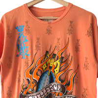 Christian Audigier Los Angeles Death From Above Fullprint Tee. Tag Christian Audigier, made in USA. Size : S Measurement : Width (Armpit-armpit) : 20 Inch Length (Shoulder to bottom) : 26 Inch Material : Cotton Condition : A A+ = Perfect! (Almost new/new/deadstock) A = Great (All in good shapes. No fade spot/fades). B+ = Vintage looks (minor fade spot/fades). B = Vintage looks with minor defect (stain/rip or hole/minor damage). Please read our shop policies before buying. Please also check the details and measurement. If you need further details, do contact us. Thank you for viewing!