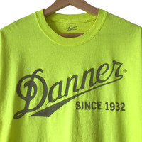 Danner Boots USA Reflective Logo Spellout Tee. Tag Changes, made in Nicaragua. Size : M Measurement : Width (Armpit-armpit) : 20.5 Inch Length (Shoulder to bottom) : 26 Inch Material : Cotton Condition : B+ A+ = Perfect! (Almost new/new/deadstock) A = Great (All in good shapes. No fade spot/fades). B+ = Vintage looks (minor fade spot/fades). B = Vintage looks with minor defect (stain/rip or hole/minor damage). Please read our shop policies before buying. Please also check the details and measurement. If you need further details, do contact us. Thank you for viewing!
