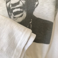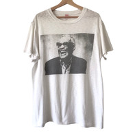 Authentic RARE Piece Denime Sportswear JP X Sir Ray Charles Legendary Jazz/Soul/Blues Pianists Photo Print Tee. Tag Denime Sportswear, made in USA. Size : L Measurement : Width (Armpit-armpit) : 22.5 Inch Length (Shoulder to bottom) : 28.5 Inch Material : Cotton Condition : B+ (Got 1 pinhole) A+ = Perfect! (Almost new/new/deadstock) A = Great (All in good shapes. No fade spot/fades). B+ = Vintage looks (minor fade spot/fades). B = Vintage looks with minor defect (stain/rip or hole/minor damage). Please read our shop policies before buying. Please also check the details and measurement. If you need further details, do contact us. Thank you for viewing! *** Please expect delays on some shipment due to the Covid-19 global pandemic. Will do the best to keep purchases safely delivered in good condition. Stay safe & let’s hope for a better future! Thank You!