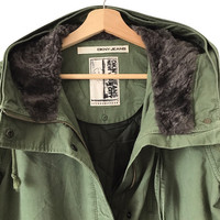 Authentic Donna Karan New York DKNY Jeans Military Inspired Long Hooded Parka. Tag DKNY Jeans, made in Japan. Complete with inner detachable warmer vest. Size : M Measurement : Width (Armpit-armpit) : 21.5 Inch Length (Shoulder to bottom) : 32 Inch Material : Cotton / Fur Condition : A A+ = Perfect! (Almost new/new/deadstock) A = Great (All in good shapes. No fade spot/fades). B+ = Vintage looks (minor fade spot/fades). B = Vintage looks with minor defect (stain/rip or hole/minor damage). Please read our shop policies before buying. Please also check the details and measurement. If you need further details, do contact us. Thank you for viewing! *** Please expect delays on some shipment due to the Covid-19 global pandemic. Will do the best to keep purchases safely delivered in good condition. Stay safe & let’s hope for a better future! Thank You!