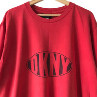 Authentic Vintage 1990s Donna Karan New York DKNY Classic Oval Logo Tee. Tag DKNY, made in USA. Size : L Measurement : Width (Armpit-armpit) : 25.5 Inch Length (Shoulder to bottom) : 31 Inch Material : Cotton Condition : A A+ = Perfect! (Almost new/new/deadstock) A = Great (All in good shapes. No fade spot/fades). B+ = Vintage looks (minor fade spot/fades). B = Vintage looks with minor defect (stain/rip or hole/minor damage). Please read our shop policies before buying. Please also check the details and measurement. If you need further details, do contact us. Thank you for viewing!