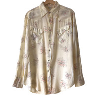 Eternal Japan Thin Cotton Floral Americana Western Shirt. Tag Eternal, made in Japan. Size : L Measurement : Width (Armpit-armpit) : 21.5 Inch Length (Shoulder to bottom) : 30.5 Inch Material : Cotton Condition : A A+ = Perfect! (Almost new/new/deadstock) A = Great (All in good shapes. No fade spot/fades). B+ = Vintage looks (minor fade spot/fades). B = Vintage looks with minor defect (stain/rip or hole/minor damage). Please read our shop policies before buying. Please also check the details and measurement. If you need further details, do contact us. Thank you for viewing!