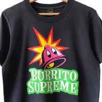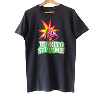 Freshjive LA 2010 Controversial Burrito Supreme Diss Tee. Tag Freshjive, made in Los Angeles. Provocative, archival collections from one of the final production of Freshjive. Size : S Measurement : Width (Armpit-armpit) : 19 Inch Length (Shoulder to bottom) : 28 Inch Material : Cotton Condition : A A+ = Perfect! (Almost new/new/deadstock) A = Great (All in good shapes. No fade spot/fades). B+ = Vintage looks (minor fade spot/fades). B = Vintage looks with minor defect (stain/rip or hole/minor damage). Please read our shop policies before buying. Please also check the details and measurement. If you need further details, do contact us. Thank you for viewing!