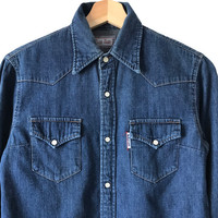 Authentic Blue Blue Japan Hollywood Ranch Market Western Denim Shirt. Tag Blue Blue, made in Japan. Size : M Measurement : Width (Armpit-armpit) : 18 Inch Length (Shoulder to bottom) : 26.5 Inch Material : Cotton Condition : A A+ = Perfect! (Almost new/new/deadstock) A = Great (All in good shapes. No fade spot/fades). B+ = Vintage looks (minor fade spot/fades). B = Vintage looks with minor defect (stain/rip or hole/minor damage). Please read our shop policies before buying. Please also check the details and measurement. If you need further details, do contact us. Thank you for viewing!