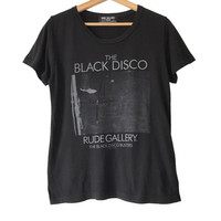Rude Gallery Japan Black Disco WMN Tee. Tag Rude Gallery, made in Japan. Size : 3 (Fits S/M) Measurement : Width (Armpit-armpit) : 18.5 Inch Length (Shoulder to bottom) : 24.5 Inch Material : Cotton Condition : A A+ = Perfect! (Almost new/new/deadstock) A = Great (All in good shapes. No fade spot/fades). B+ = Vintage looks (minor fade spot/fades). B = Vintage looks with minor defect (stain/rip or hole/minor damage). Please read our shop policies before buying. Please also check the details and measurement. If you need further details, do contact us. Thank you for viewing!