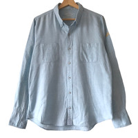 T.M.T Big Holiday Japan Linen Blend Casual Shirt. Tag T.M.T, made in Japan. Size : L Measurement : Width (Armpit-armpit) : 22 Inch Length (Shoulder to bottom) : 28.5 Inch Material : Cotton / Linen Condition : A A+ = Perfect! (Almost new/new/deadstock) A = Great (All in good shapes. No fade spot/fades). B+ = Vintage looks (minor fade spot/fades). B = Vintage looks with minor defect (stain/rip or hole/minor damage). Please read our shop policies before buying. Please also check the details and measurement. If you need further details, do contact us. Thank you for viewing!