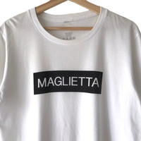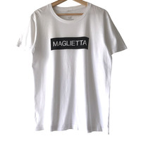 Junhashimoto Japanese Designer “Maglietta” Tee. Tag Junhashimoto, made in Japan. Size : (Fits M) Measurement : Width (Armpit-armpit) : 21 Inch Length (Shoulder to bottom) : 27.5 Inch Material : Cotton Condition : A A+ = Perfect! (Almost new/new/deadstock) A = Great (All in good shapes. No fade spot/fades). B+ = Vintage looks (minor fade spot/fades). B = Vintage looks with minor defect (stain/rip or hole/minor damage). Please read our shop policies before buying. Please also check the details and measurement. If you need further details, do contact us. Thank you for viewing!