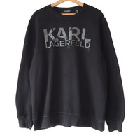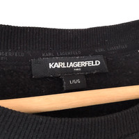 Karl Lagerfeld Paris Black Big Logo Designer Crewneck Sweatshirt. Tag Karl Lagerfeld, made in China. Size : L Measurement : Width (Armpit-armpit) : 24.5 Inch Length (Shoulder to bottom) : 28.5 Inch Material : Cotton Condition : A A+ = Perfect! (Almost new/new/deadstock) A = Great (All in good shapes. No fade spot/fades). B+ = Vintage looks (minor fade spot/fades). B = Vintage looks with minor defect (stain/rip or hole/minor damage). Please read our shop policies before buying. Please also check the details and measurement. If you need further details, do contact us. Thank you for viewing!