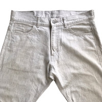 Lad Musician Japan White (Greyish White) Denim. Tag Lad Musician, made in Japan. Size : 44 (Fits W31) Measurement : Waist : 31 Inch Outseam : 41 Inch Inseam : 33.5 Inch Leg Opening : 13 Inch Front Rise : 10.5 Inch Material : Cotton Condition : A A+ = Perfect! (Almost new/new/deadstock) A = Great (All in good shapes. No fade spot/fades). B+ = Vintage looks (minor fade spot/fades). B = Vintage looks with minor defect (stain/rip or hole/minor damage). Please read our shop policies before buying. Please also check the details and measurement. If you need further details, do contact us. Thank you for viewing!