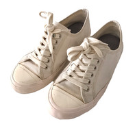 Authentic Reproduction Of Found Japan 1940s US Navy Canvas Trainer Shoe. Tag Reproduction Of Found, made in Romania. Size : US8 / UK7 / EUR41 Material : Canvas / Rubber Condition : A A+ = Perfect! (Almost new/new/deadstock) A = Great (All in good shapes. No fade spot/fades). B+ = Vintage looks (minor fade spot/fades). B = Vintage looks with minor defect (stain/rip or hole/minor damage). Please read our shop policies before buying. Please also check the details and measurement. If you need further details, do contact us. Thank you for viewing!