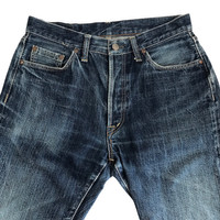 Authentic Vintage Omnigod Jalan Faded Selvedge Worn Out Raw Denim. Tag Omnigod, made in Japan. Size : W30 Measurement : Waist : 30 Inch Outseam : 40.5 Inch Inseam : 30.5 Inch Leg Opening : 16 Inch Front Rise : 10.5 Inch Material : Cotton Condition : B+ A+ = Perfect! (Almost new/new/deadstock) A = Great (All in good shapes. No fade spot/fades). B+ = Vintage looks (minor fade spot/fades). B = Vintage looks with minor defect (stain/rip or hole/minor damage). Please read our shop policies before buying. Please also check the details and measurement. If you need further details, do contact us. Thank you for viewing! *** Please expect delays on some shipment due to the Covid-19 global pandemic. Will do the best to keep purchases safely delivered in good condition. Stay safe & let’s hope for a better future! Thank You!