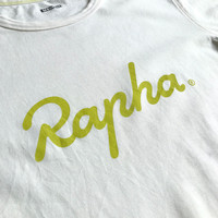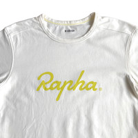 Rapha London Basic Logo Tee. Tag Rapha, made in Portugal. Color is greenish / yellowish white - may look different due to lighting etc. Size : M Measurement : Width (Armpit-armpit) : 19 Inch Length (Shoulder to bottom) : 27 Inch Material : Cotton Condition : A A+ = Perfect! (Almost new/new/deadstock) A = Great (All in good shapes. No fade spot/fades). B+ = Vintage looks (minor fade spot/fades). B = Vintage looks with minor defect (stain/rip or hole/minor damage). Please read our shop policies before buying. Please also check the details and measurement. If you need further details, do contact us. Thank you for viewing!
