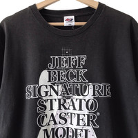Jeff Beck Legendary Guitarist Signature Fender Stratocaster Tribute Tee. Tag MF Matfia Japan, made in China. Size : L Measurement : Width (Armpit-armpit) : 21 Inch Length (Shoulder to bottom) : 27 Inch Material : Cotton Condition : A A+ = Perfect! (Almost new/new/deadstock) A = Great (All in good shapes. No fade spot/fades). B+ = Vintage looks (minor fade spot/fades). B = Vintage looks with minor defect (stain/rip or hole/minor damage). Please read our shop policies before buying. Please also check the details and measurement. If you need further details, do contact us. Thank you for viewing!