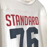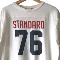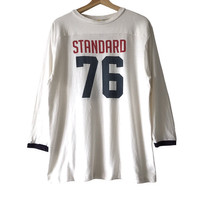 Standard California Japan X Ron Herman College Baseball Vintage Inspired Tee. Tag Standard California, made in Japan. Size : L Measurement : Width (Armpit-armpit) : 21 Inch Length (Shoulder to bottom) : 28.5 Inch Material : Cotton Condition : A A+ = Perfect! (Almost new/new/deadstock) A = Great (All in good shapes. No fade spot/fades). B+ = Vintage looks (minor fade spot/fades). B = Vintage looks with minor defect (stain/rip or hole/minor damage). Please read our shop policies before buying. Please also check the details and measurement. If you need further details, do contact us. Thank you for viewing!