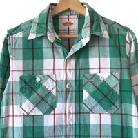 Star Union By Toyo Enterprise Japan Double Pocket Checkered Work Shirt. Tag Star Union, made in Japan. Size : M Measurement : Width (Armpit-armpit) : 19 Inch Length (Shoulder to bottom) : 27 Inch Material : Cotton Condition : A A+ = Perfect! (Almost new/new/deadstock) A = Great (All in good shapes. No fade spot/fades). B+ = Vintage looks (minor fade spot/fades). B = Vintage looks with minor defect (stain/rip or hole/minor damage). Please read our shop policies before buying. Please also check the details and measurement. If you need further details, do contact us. Thank you for viewing!