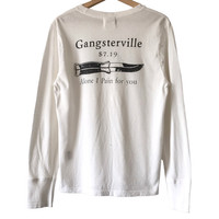 Gangsterville By Gladhand & Co. Japan Knife Longsleeve Tee. Tag Gangsterville, made in China. Size : S Measurement : Width (Armpit-armpit) : 19 Inch Length (Shoulder to bottom) : 26.5 Inch Material : Cotton Condition : A A+ = Perfect! (Almost new/new/deadstock) A = Great (All in good shapes. No fade spot/fades). B+ = Vintage looks (minor fade spot/fades). B = Vintage looks with minor defect (stain/rip or hole/minor damage). Please read our shop policies before buying. Please also check the details and measurement. If you need further details, do contact us. Thank you for viewing!