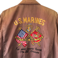 Authentic Vintage Houston US Marines Embroidery Flight Jacket. Tag Houston, made in Unknown. Size : 38 (Fits M/L) Measurement : Width (Armpit-armpit) : 24 Inch Length (Shoulder to bottom) : 25 Inch Material : Nylon / Polyester Condition : B+ (Some fades) A+ = Perfect! (Almost new/new/deadstock) A = Great (All in good shapes. No fade spot/fades). B+ = Vintage looks (minor fade spot/fades). B = Vintage looks with minor defect (stain/rip or hole/minor damage). Please read our shop policies before buying. Please also check the details and measurement. If you need further details, do contact us. Thank you for viewing! *** Please expect delays on some shipment due to the Covid-19 global pandemic. Will do the best to keep purchases safely delivered in good condition. Stay safe & let’s hope for a better future! Thank You!