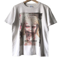 Aint’t Laurent Without Yves Party Parody Unknown Tee. Tag Printstar, made in China. Size : S Measurement : Width (Armpit-armpit) : 20 Inch Length (Shoulder to bottom) : 24 Inch Material : Cotton Condition : A A+ = Perfect! (Almost new/new/deadstock) A = Great (All in good shapes. No fade spot/fades). B+ = Vintage looks (minor fade spot/fades). B = Vintage looks with minor defect (stain/rip or hole/minor damage). Please read our shop policies before buying. Please also check the details and measurement. If you need further details, do contact us. Thank you for viewing!