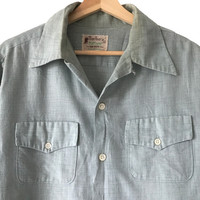 Authentic Vintage 1960s Marlboro USA Double Pocket Chambray Selvedge Line Shirt. Tag Marlboro, made in USA. Size : L Measurement : Width (Armpit-armpit) : 24 Inch Length (Shoulder to bottom) : 29 Inch Material : Cotton Condition : B+ A+ = Perfect! (Almost new/new/deadstock) A = Great (All in good shapes. No fade spot/fades). B+ = Vintage looks (minor fade spot/fades). B = Vintage looks with minor defect (stain/rip or hole/minor damage). Please read our shop policies before buying. Please also check the details and measurement. If you need further details, do contact us. Thank you for viewing!