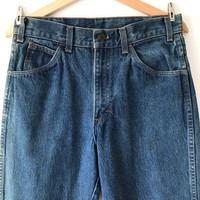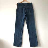 Authentic Vintage 70s Saddle King by Key Imperial USA Non-Selvedge Denim. Tag Saddle King, made in USA. Talon zipper. True vintage American historical work denim brand by Key Imperial. Size : W31 Measurement : Waist : 30/31 Inch Outseam : 43.5 Inch Inseam : 33.5 Inch Leg Opening : 16 Inch Front Rise : 12 Inch Material : Cotton Condition : B+ (Sunfaded on the side) A+ = Perfect! (Almost new/new/deadstock) A = Great (All in good shapes. No fade spot/fades). B+ = Vintage looks (minor fade spot/fades). B = Vintage looks with minor defect (stain/rip or hole/minor damage). Please read our shop policies before buying. Please also check the details and measurement. If you need further details, do contact us. Thank you for viewing! *** Please expect delays on some shipment due to the Covid-19 global pandemic. Will do the best to keep purchases safely delivered in good condition. Stay safe & let’s hope for a better future! Thank You!