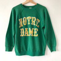 Authentic Vintage 1980s Champion Notre Dame Sweatshirt. Tag Champion 80s, made in USA. Size : M Measurement : Width (Armpit-armpit) : 20 Inch Length (Shoulder to bottom) : 24 Inch Material : Cotton / Polyester Condition : B+ (Some fades at the back of the collar) A+ = Perfect! (Almost new/new/deadstock) A = Great (All in good shapes. No fade spot/fades). B+ = Vintage looks (minor fade spot/fades). B = Vintage looks with minor defect (stain/rip or hole/minor damage). Please read our shop policies before buying. Please also check the details and measurement. If you need further details, do contact us. Thank you for viewing! *** Please expect delays on some shipment due to the Covid-19 global pandemic. Will do the best to keep purchases safely delivered in good condition. Stay safe & let’s hope for a better future! Thank You!