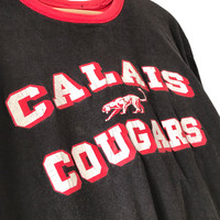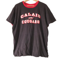 Authentic Vintage 1980s Champion USA Calais Cougars Reversible Tee. Tag Champion 80s, made in USA. Size : XL Measurement : Width (Armpit-armpit) : 22.5 Inch Length (Shoulder to bottom) : 27 Inch Material : Cotton Condition : A A+ = Perfect! (Almost new/new/deadstock) A = Great (All in good shapes. No fade spot/fades). B+ = Vintage looks (minor fade spot/fades). B = Vintage looks with minor defect (stain/rip or hole/minor damage). Please read our shop policies before buying. Please also check the details and measurement. If you need further details, do contact us. Thank you for viewing!