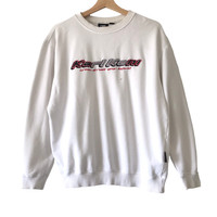 Authentic Vintage 1990s Karl Kani Urban Streetwear Logo Embroidery Crewneck Sweatshirt. Tag Karl Kani, made in Korea. Size : M Measurement : Width (Armpit-armpit) : 23 Inch Length (Shoulder to bottom) : 26 Inch Material : Cotton Condition : B+ (Minor spots) A+ = Perfect! (Almost new/new/deadstock) A = Great (All in good shapes. No fade spot/fades). B+ = Vintage looks (minor fade spot/fades). B = Vintage looks with minor defect (stain/rip or hole/minor damage). Please read our shop policies before buying. Please also check the details and measurement. If you need further details, do contact us. Thank you for viewing! *** Please expect delays on some shipment due to the Covid-19 global pandemic. Will do the best to keep purchases safely delivered in good condition. Stay safe & let’s hope for a better future! Thank You!