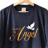 Authentic Vintage 1996 CBS Touched By An Angel American TV Drama Series Promo Tee. Tag Santee Gold, made in Honduras. Size : XL Measurement : Width (Armpit-armpit) : 24 Inch Length (Shoulder to bottom) : 29.5 Inch Material : Cotton Condition : A A+ = Perfect! (Almost new/new/deadstock) A = Great (All in good shapes. No fade spot/fades). B+ = Vintage looks (minor fade spot/fades). B = Vintage looks with minor defect (stain/rip or hole/minor damage). Please read our shop policies before buying. Please also check the details and measurement. If you need further details, do contact us. Thank you for viewing! *** Please expect delays on some shipment due to the Covid-19 global pandemic. Will do the best to keep purchases safely delivered in good condition. Stay safe & let’s hope for a better future! Thank You!