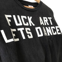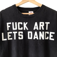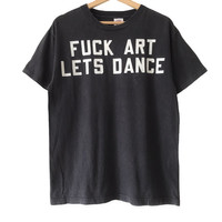 Authentic Vintage 2000s Fuck Art Lets Dance Funny Quotes Tee. Tag Delta, made in USA/Mexico. Size : M Measurement : Width (Armpit-armpit) : 20 Inch Length (Shoulder to bottom) : 26.5 Inch Material : Cotton Condition : A A+ = Perfect! (Almost new/new/deadstock) A = Great (All in good shapes. No fade spot/fades). B+ = Vintage looks (minor fade spot/fades). B = Vintage looks with minor defect (stain/rip or hole/minor damage). Please read our shop policies before buying. Please also check the details and measurement. If you need further details, do contact us. Thank you for viewing!